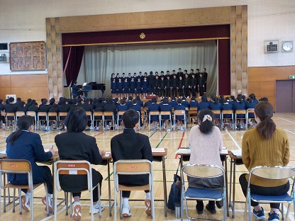 2・3年生の音楽会リハーサルが、体育館で行われました。数週間前までとは、大きく成長したクラスの合唱を聴くことができました。歌う側だけでなく聞く側の生徒も真剣です。『鑑賞のプリント』にびっしりと感じたことを書き込む生徒が多くいたことが、この行事にかける意気込みを感じることができました。本番が、楽しみです。